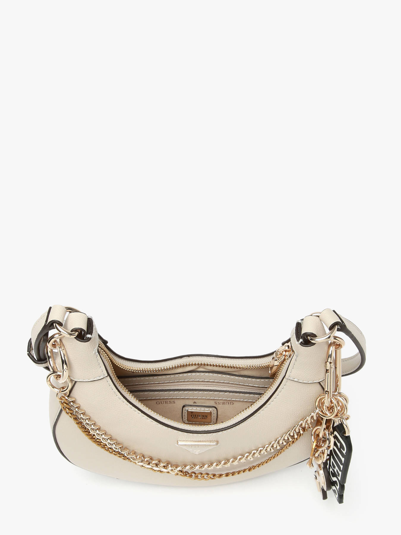The DAVINA GUESS crossbody bag in P.U combines elegance and daily practicality. Its exterior features a secure zip closure, protecting your belongings. The 35 cm handle height and adjustable shoulder strap offer comfortable wear, either on the shoulder or crossbody as you prefer. Inside, the bag provides a spacious main compartment, complemented by a zippered pocket to safely organize small items. Additionally, it includes three card slots for easy storage of your essentials. Practical and stylish, the DAVINA bag is perfect to accompany all your outings with finesse.