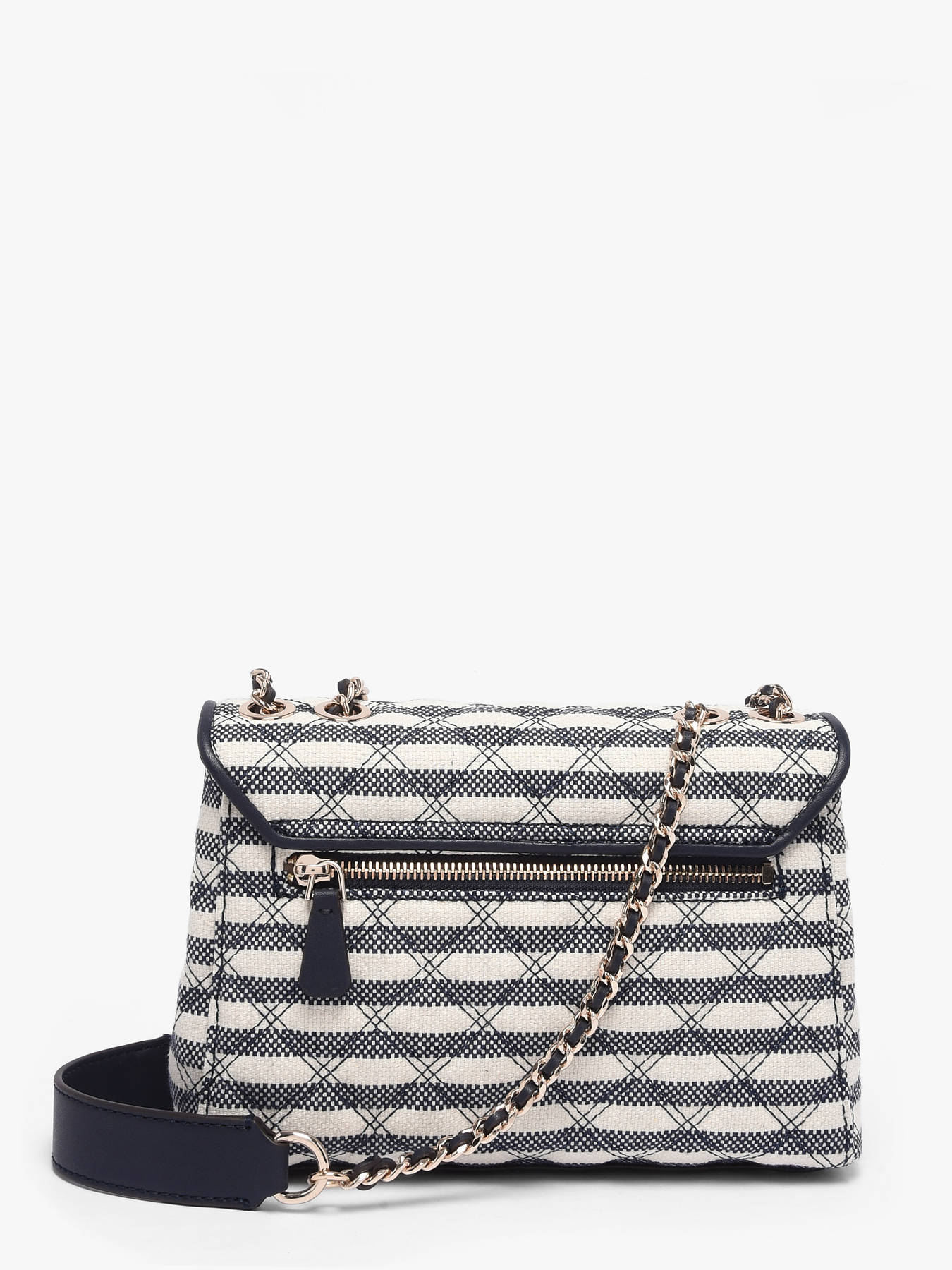 The GIULLY GUESS crossbody bag combines practicality with modern elegance. Made from synthetic-trimmed textile, it provides a lightweight yet durable texture, perfect for everyday use. Its flap with magnetic closure ensures easy access while keeping your belongings secure. The cleverly organized interior features two main compartments, a zip pocket, and six card slots, allowing you to keep essentials neatly arranged. On the outside, a back pocket offers quick access to small items. The 31 cm shoulder strap allows it to be worn on the shoulder or crossbody, blending comfort and style. Its compact yet structured silhouette makes it a versatile companion, ideal for a day in the city or an elegant outing. Every detail reflects the quality and craftsmanship of GUESS, making it both a chic and functional accessory.