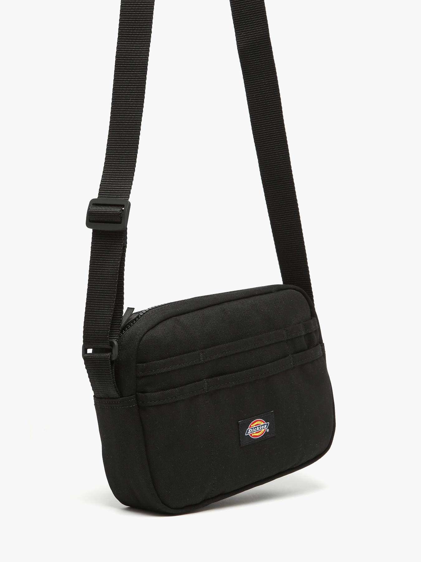 The DICKIES crossbody bag, made from recycled polyester, combines durability with eco-friendly functionality. Its exterior features seven front pockets and one back pocket, providing optimized storage for all your small accessories. The zip closure secures your belongings, while the adjustable strap offers comfortable crossbody wear, perfectly adaptable to your style. Inside, a spacious main compartment is complemented by two simple pockets for efficient organization of your essentials. This versatile and durable bag is ideal for everyday use, combining practicality, style, and responsible commitment.