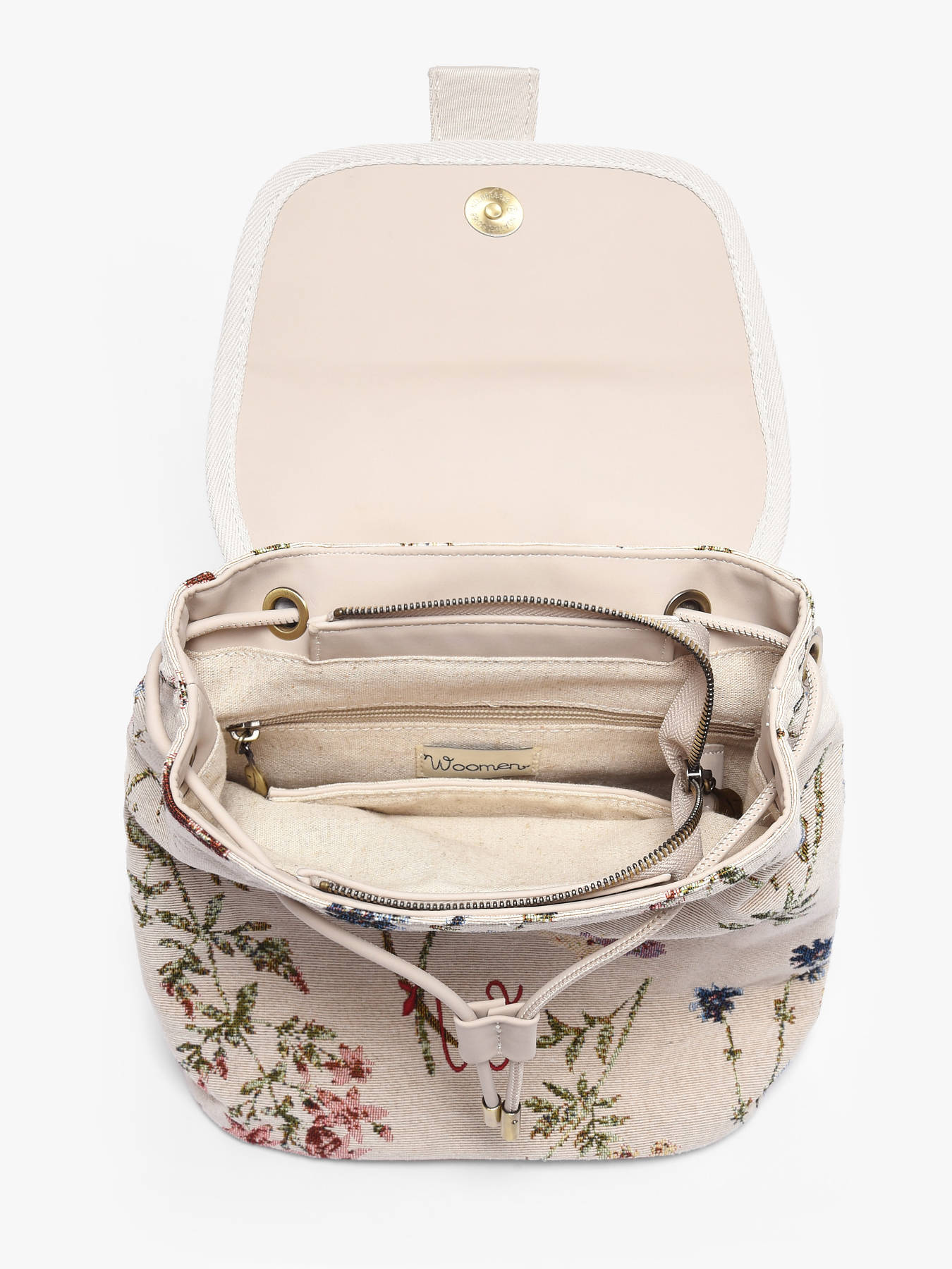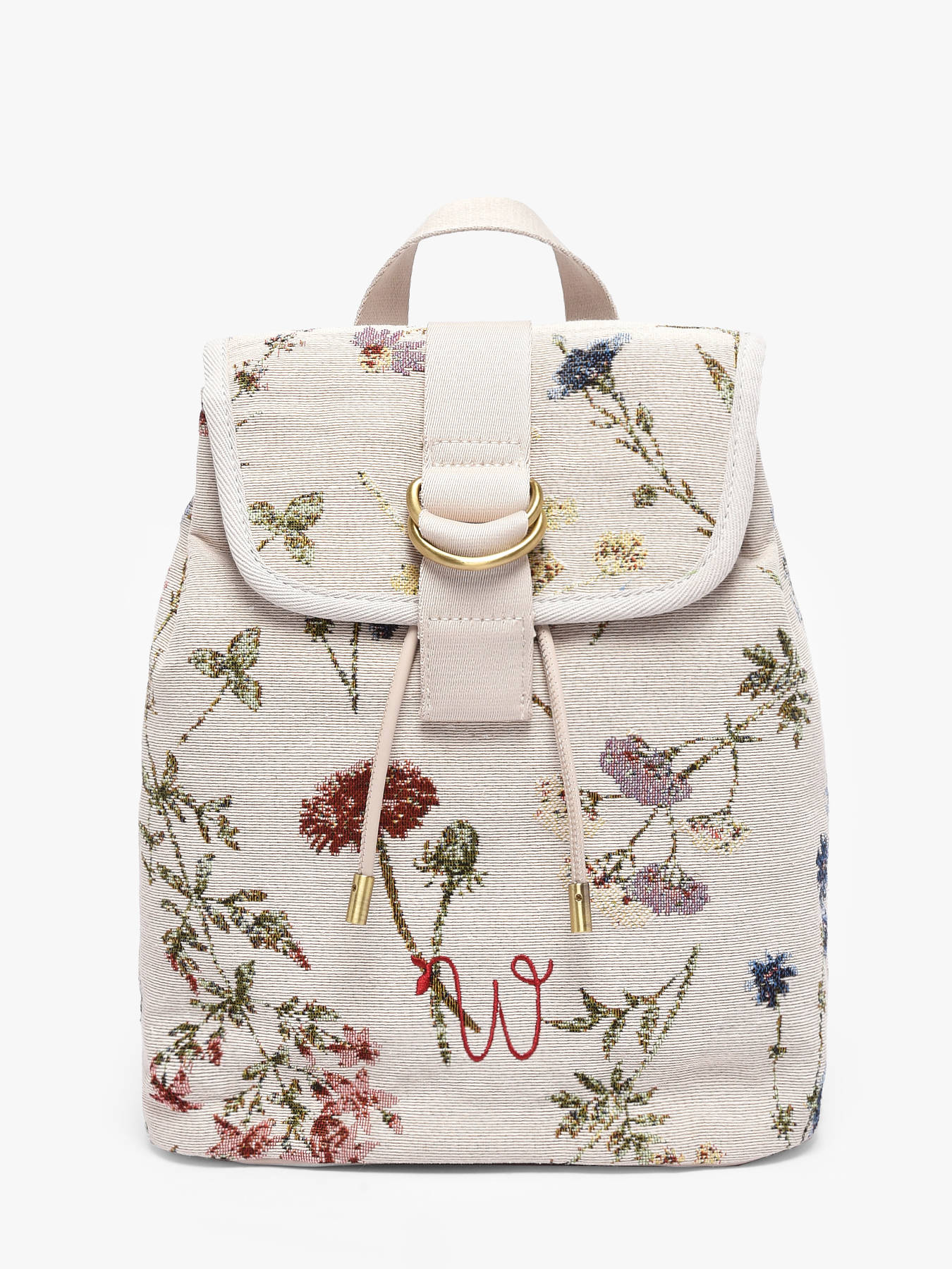 The WOOMEN Alocasia backpack combines refined craftsmanship with modern functionality. Its intricately woven jacquard, featuring delicate patterns, reflects subtle and timeless femininity, while the embroidered W logo on the front emphasizes the brand’s identity. Made from cotton and polyester, it offers both durability and lightness, with a cotton and linen lining for a soft, polished finish. The backpack features a flap with a magnetic snap and a drawstring closure to secure the main compartment, while a zip pocket on the back provides convenient access to essentials. Inside, a patch pocket and a zip pocket offer organized storage for your belongings. Elegant and practical, it is perfect for both urban commutes and active days, providing comfort, freedom of movement, and a distinctive artisanal touch.
