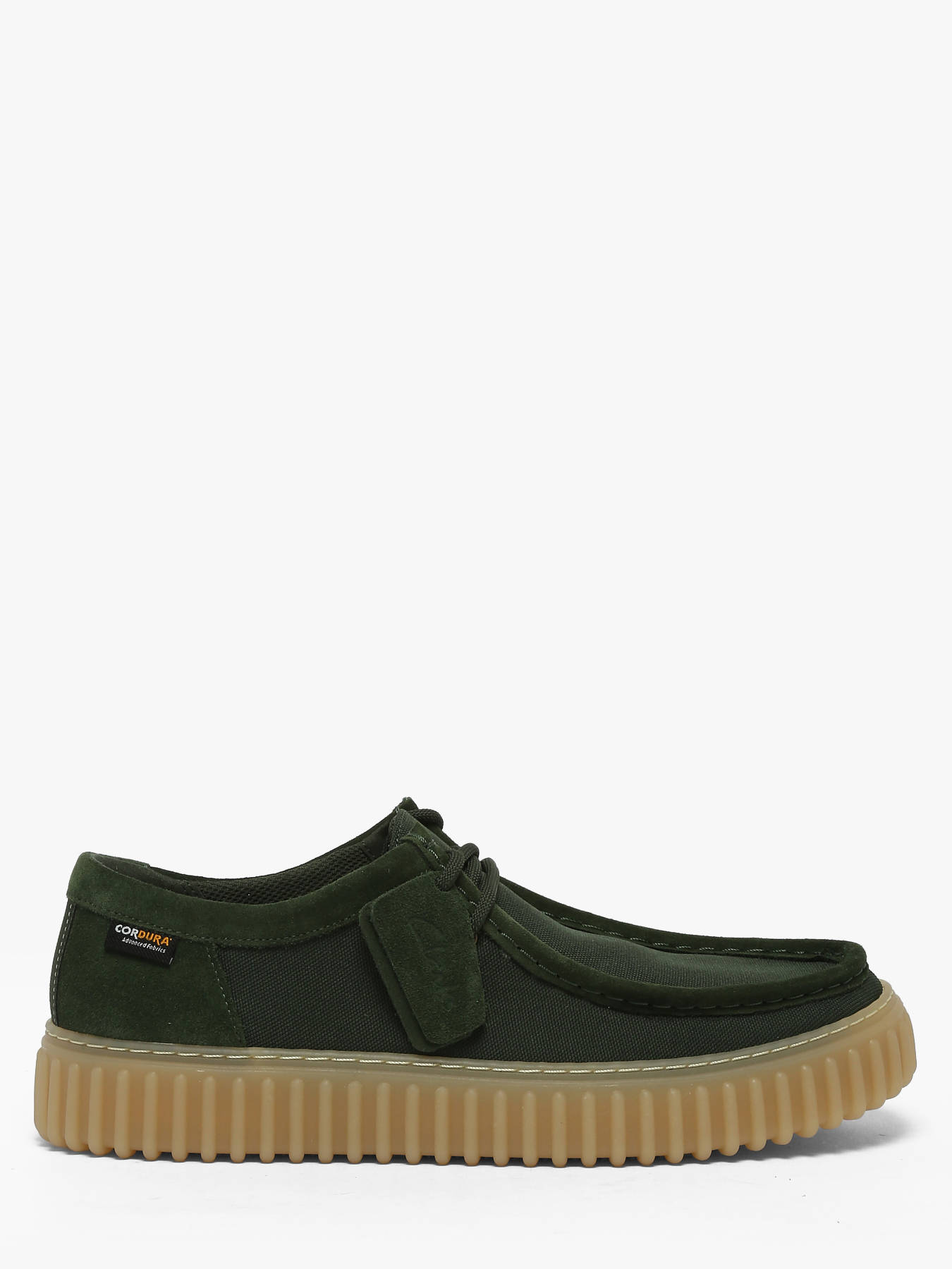 The Torhill Lo derbies by Clarks in deep forest green reinterpret the brand’s heritage with confident modernity. Their bold ribbed outsole, inspired by the iconic 1990s Big Gripper profile, makes a strong statement while remaining perfectly contemporary. The clean lace-up design echoes the unmistakable curves of the legendary Wallabee, creating a silhouette that stands out effortlessly. Crafted from premium, durable textiles, they feature refined finishes and intricate stitching details that enhance their authentic character. Comfortable and sturdy, the Torhill Lo are the ultimate casual shoes to elevate your everyday looks with a distinctive heritage touch and timeless style.