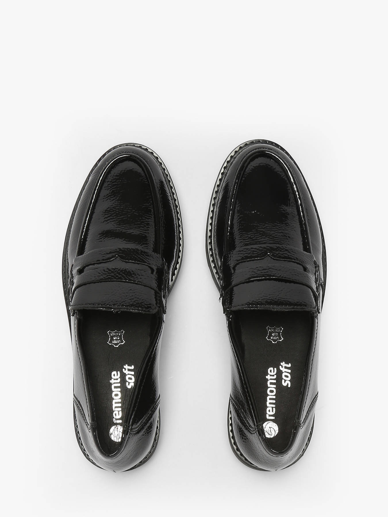 The leather loafers from REMONTE embody everyday elegance and comfort. Featuring an upper that combines leather and synthetic materials, they stand out with a patent finish that adds shine and sophistication to every step. Easy to slip on thanks to their practical design, they provide comfortable support while offering a classic and refined style. The textile lining ensures softness and breathability, while the leather insole delivers comfort and support throughout the day. Versatile and timeless, these REMONTE loafers pair effortlessly with any outfit, from tailored trousers to casual jeans, offering a chic, polished look without compromising on comfort or material quality.