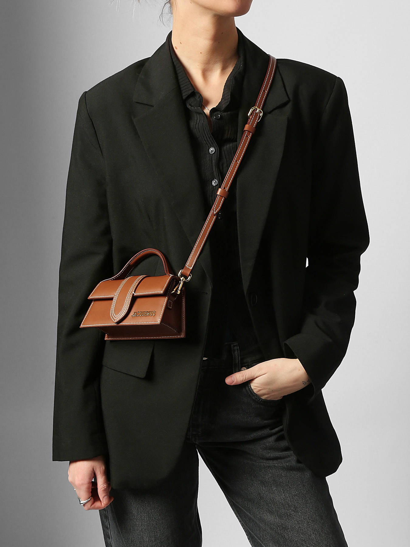 The Jacquemus Bambino Mini shoulder bag, crafted from calf leather, combines elegance and practicality. It features a flap with a magnetic closure, providing quick and secure access to your essentials. The adjustable and removable strap allows versatile carrying options, either handheld or over the shoulder, for optimal flexibility. This compact model includes one simple pocket inside and a pocket on the back for convenient storage. This second-hand bag is graded AA, meaning it is like new, unused, with accessories still sealed, ensuring impeccable quality.