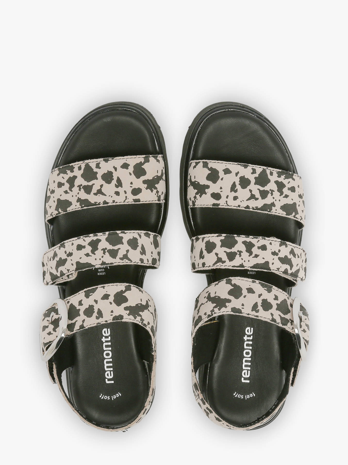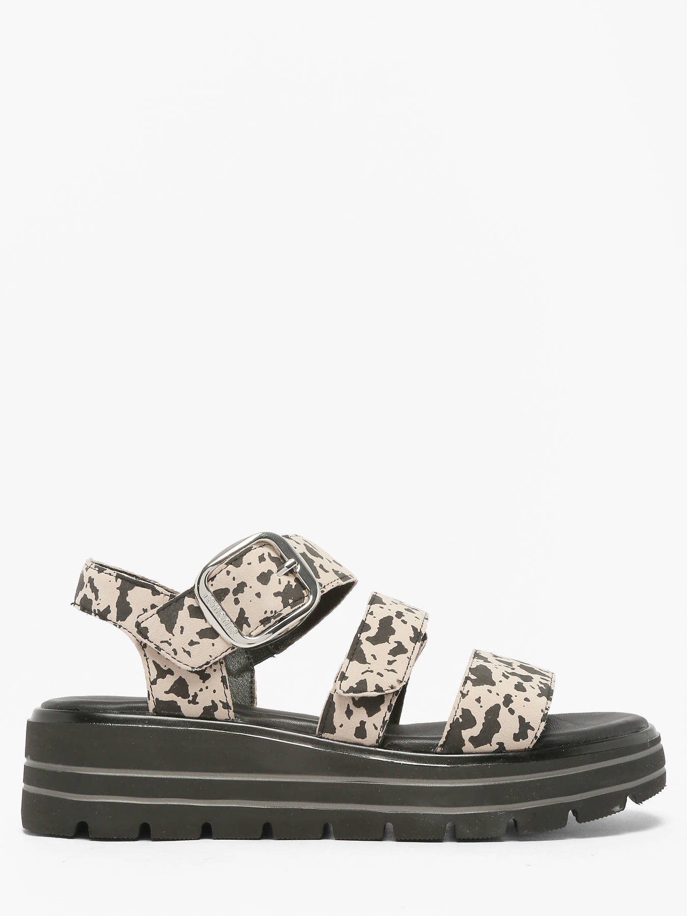 Add a bold and trendy touch to your summer outfits with these REMONTE sandals featuring an animal print design. The leather upper with a suede finish provides a refined and daring look, perfect for enhancing both casual and dressier ensembles. The leather and synthetic lining ensures a comfortable and breathable fit, while the leather insole delivers optimal comfort throughout the day. The practical velcro closure allows for quick, secure adjustment, easily adapting to all foot shapes. Versatile and stylish, these REMONTE sandals pair effortlessly with summer looks, from casual to urban chic, combining comfort and aesthetic appeal. With their elegant and functional design, they become a summer wardrobe essential, blending quality craftsmanship, support, and style for everyday wear and leisure moments.