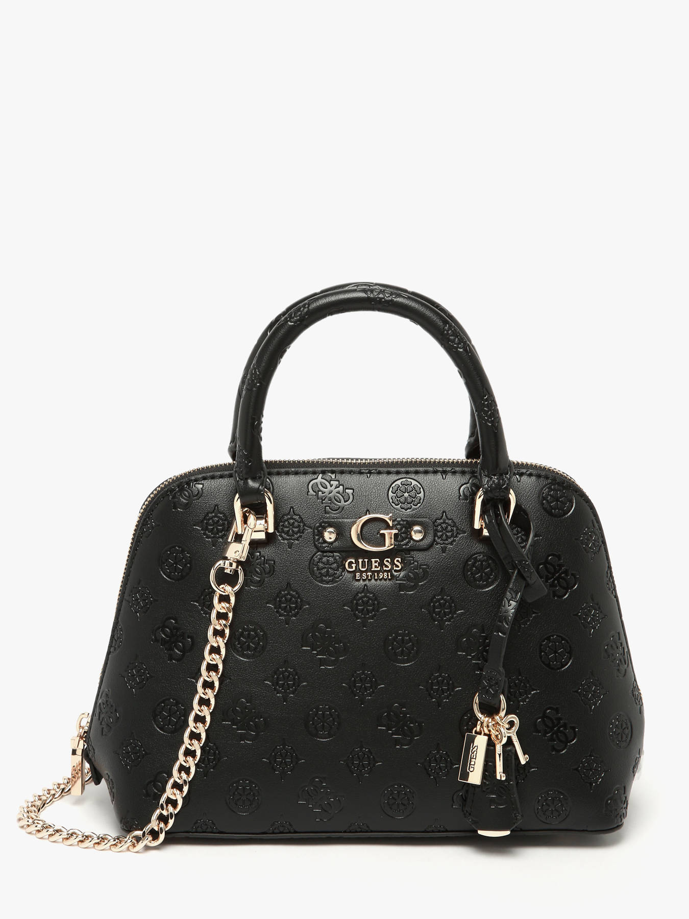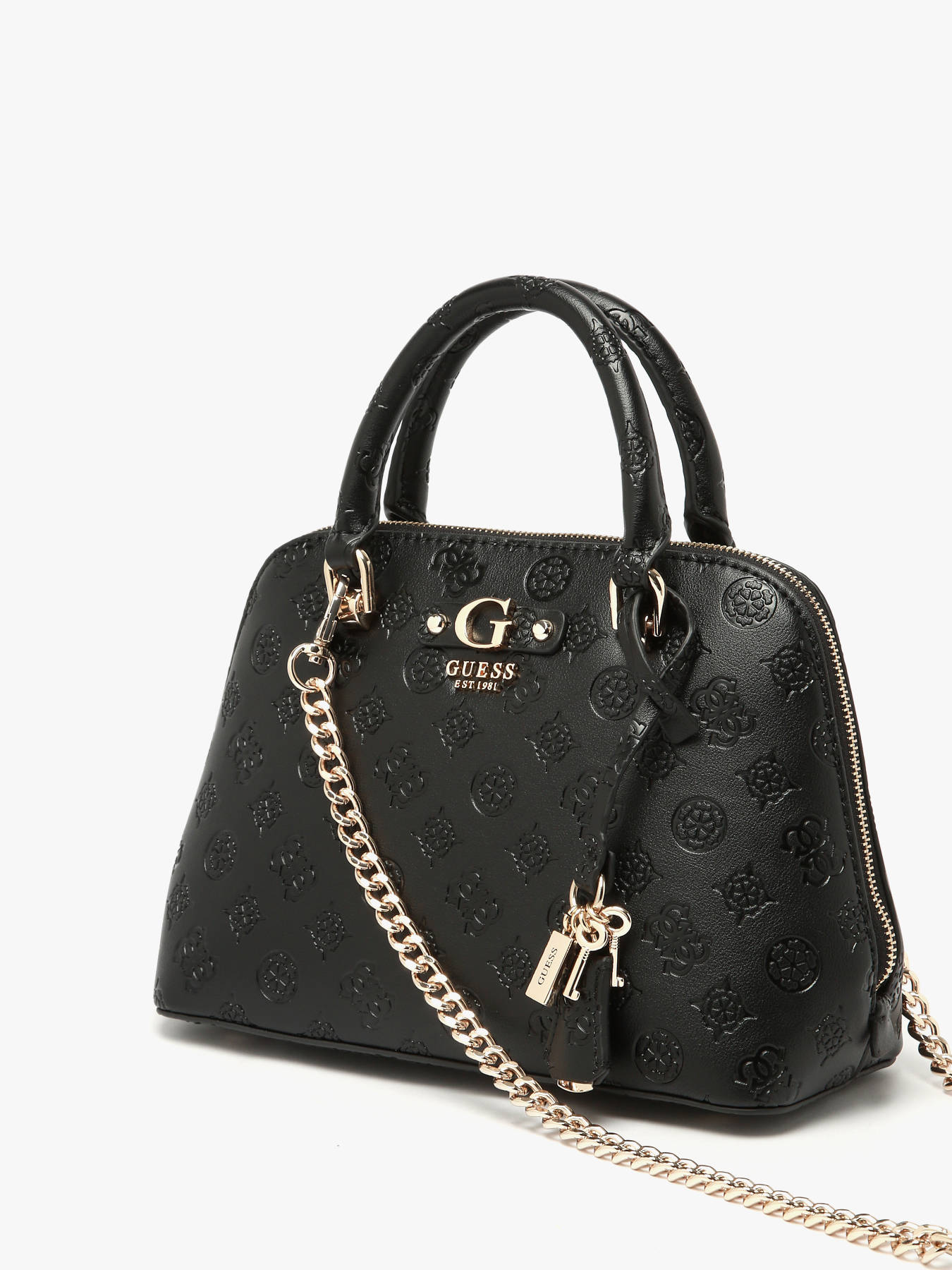 The DITA GUESS handbag, made of P.U., combines style and practicality for your daily use. The exterior features a secure zip closure and a back pocket, perfect for quick access to essentials. With an 8 cm handle height, it can be carried elegantly by hand, while its removable strap offers the option to wear it crossbody. Inside, the bag has one main compartment, complemented by two simple pockets and one zippered pocket for efficient organization of personal items. The DITA GUESS is a perfect choice to blend elegance and functionality every day.