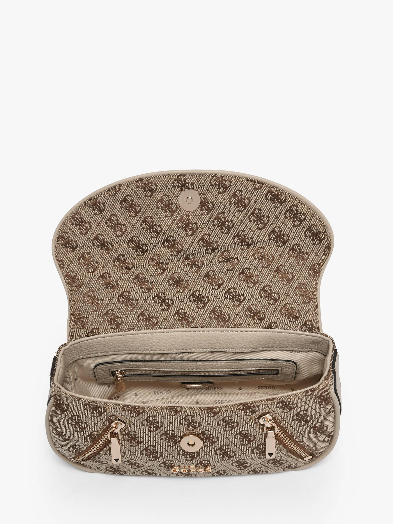 The JESSA GUESS crossbody bag, made of polyester, combines modern style with everyday practicality. Its exterior features two front pockets, a back pocket, and a flap closure with a magnetic fastener, while the adjustable and removable strap allows comfortable crossbody wear. Inside, a main compartment, a zip pocket, and a card slot provide organized storage for essentials such as your phone, wallet, or small accessories, ensuring accessibility and functionality. Lightweight, durable, and stylish, this JESSA GUESS bag stands out for its contemporary design and refined details, adding a chic and practical touch to any outfit. Perfect for those seeking a functional and stylish bag, it is an essential accessory for daily use.