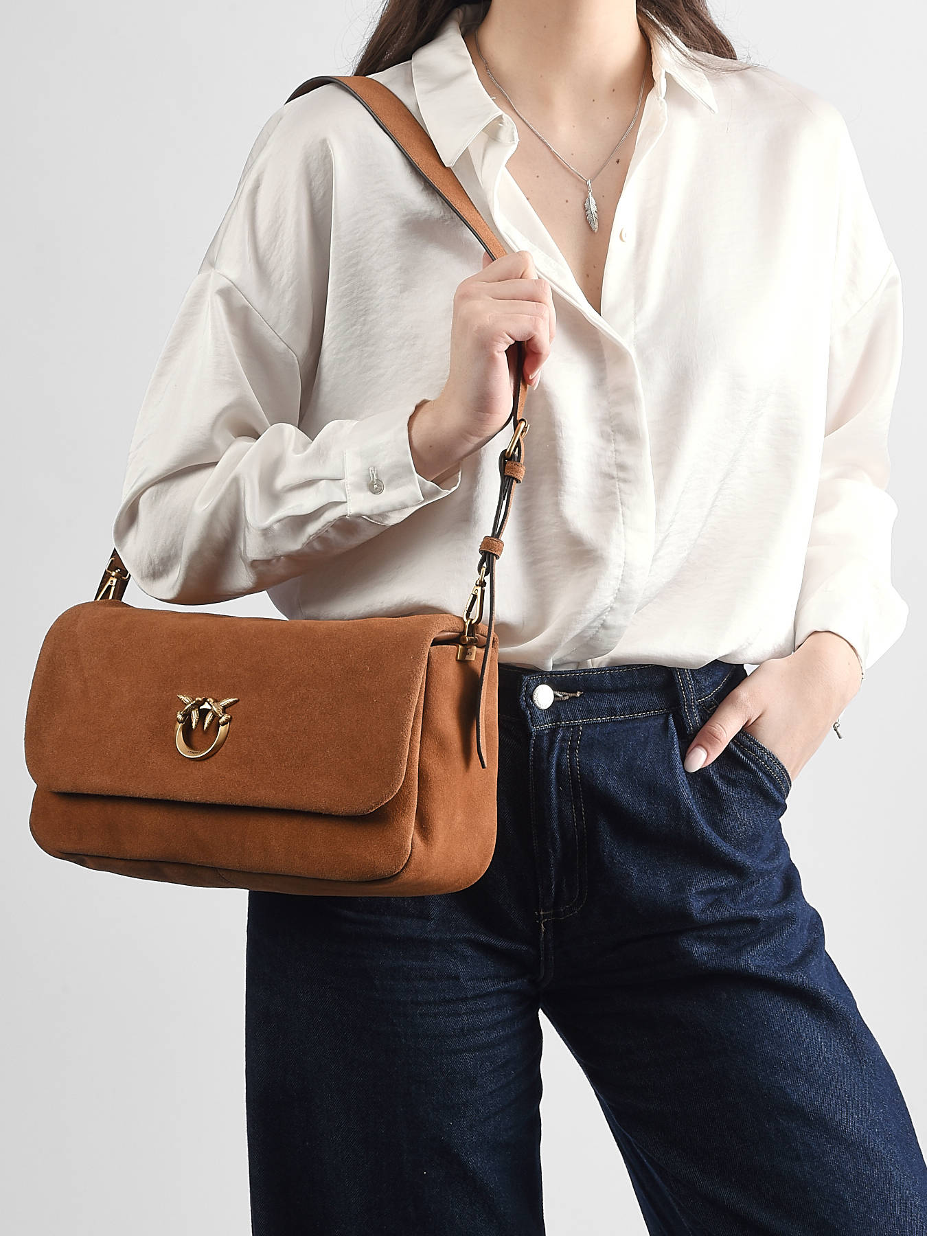 The LOVE BAG SOFT PINKO Shoulder Bag perfectly combines elegance, softness, and practicality. Crafted from supple, refined goatskin leather, it offers a luxurious texture while remaining lightweight and comfortable to carry. Its magnetic flap closure ensures security and ease of use, while the adjustable and removable strap allows versatile shoulder or crossbody wear. The back pocket provides quick access to essentials. Inside, two separate compartments and two zip pockets create organized space for phone, wallet, keys, and small personal items, combining functionality and ease. With its clean design and rounded lines, the LOVE BAG SOFT MILANO embodies modern sophistication. Ideal for completing both urban and elegant outfits, it adds a subtle touch of refinement and everyday comfort.