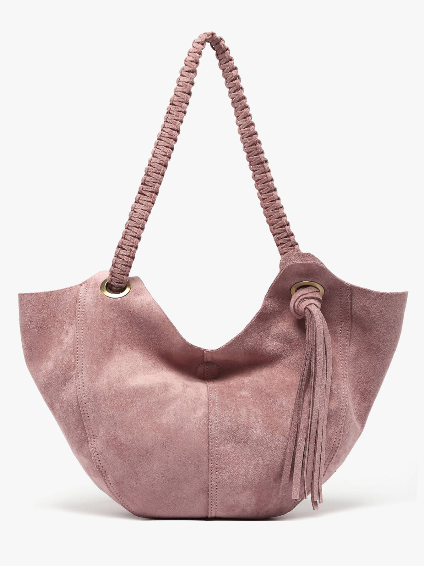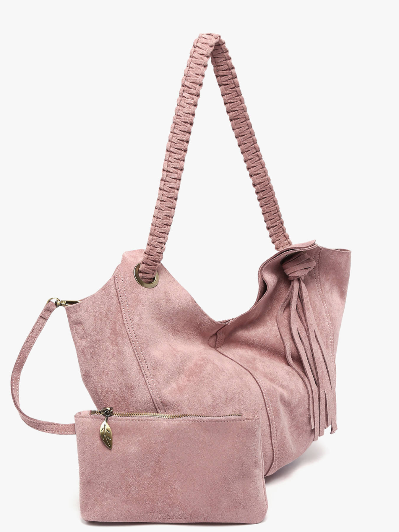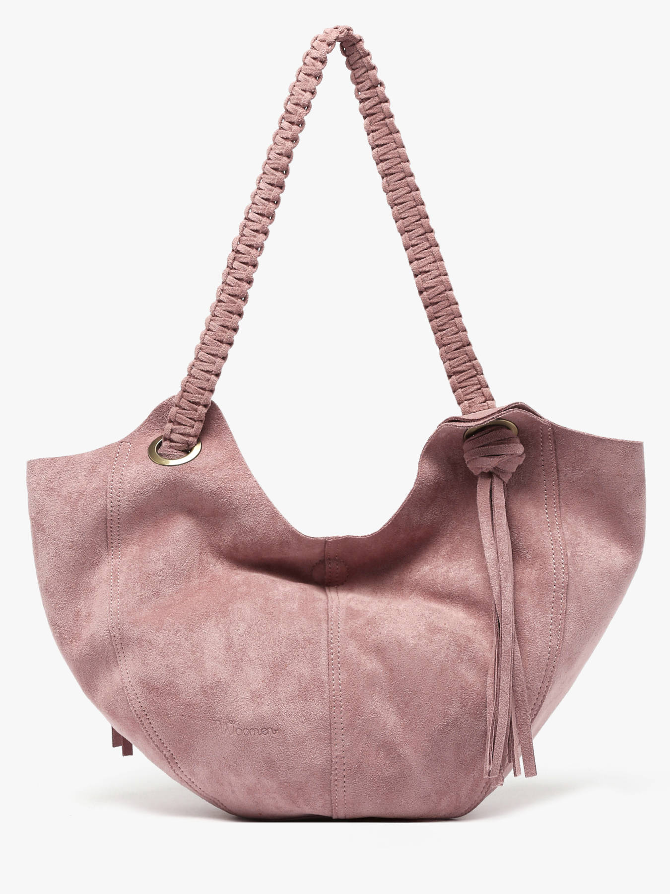 The WOOMEN Maranta S-size shoulder bag combines fluidity, style, and practicality. Its velvet material and braided strap ending in tassels at the front and back bring lightness and originality to the design. Made from polyester, it features a hidden magnet closure and a small attached zippered slip pocket inside to organize your essentials. The subtly embossed logo on the front adds a refined finishing touch. This shoulder bag is a functional and elegant accessory, perfect for complementing any outfit with fluidity and style.
