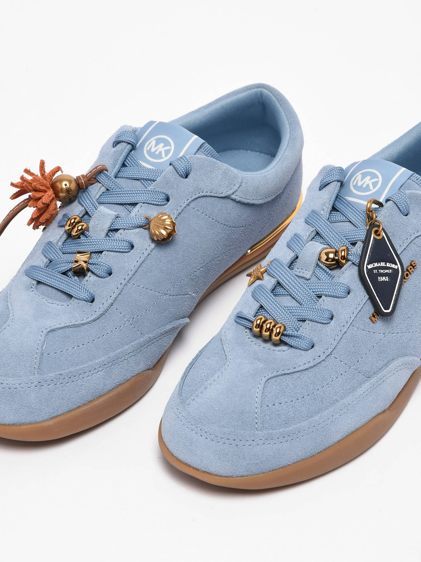 Choose the NOLAN LACE UP Sneakers from the MICHAEL KORS brand, a feminine model that combines contemporary style with refined details. Made with a suede-finish leather upper, they offer a soft and elegant texture that enhances any casual outfit. Decorative jewels on the laces add a glamorous and distinctive touch, bringing originality and sophistication to the design. The textile lining and insole provide comfort and support throughout the day, while the lace-up closure ensures a precise and secure fit. Versatile, these sneakers can be worn with jeans, trousers, or even a casual dress, for a modern, feminine, and stylish look. Ideal for those seeking elegance and comfort every day.