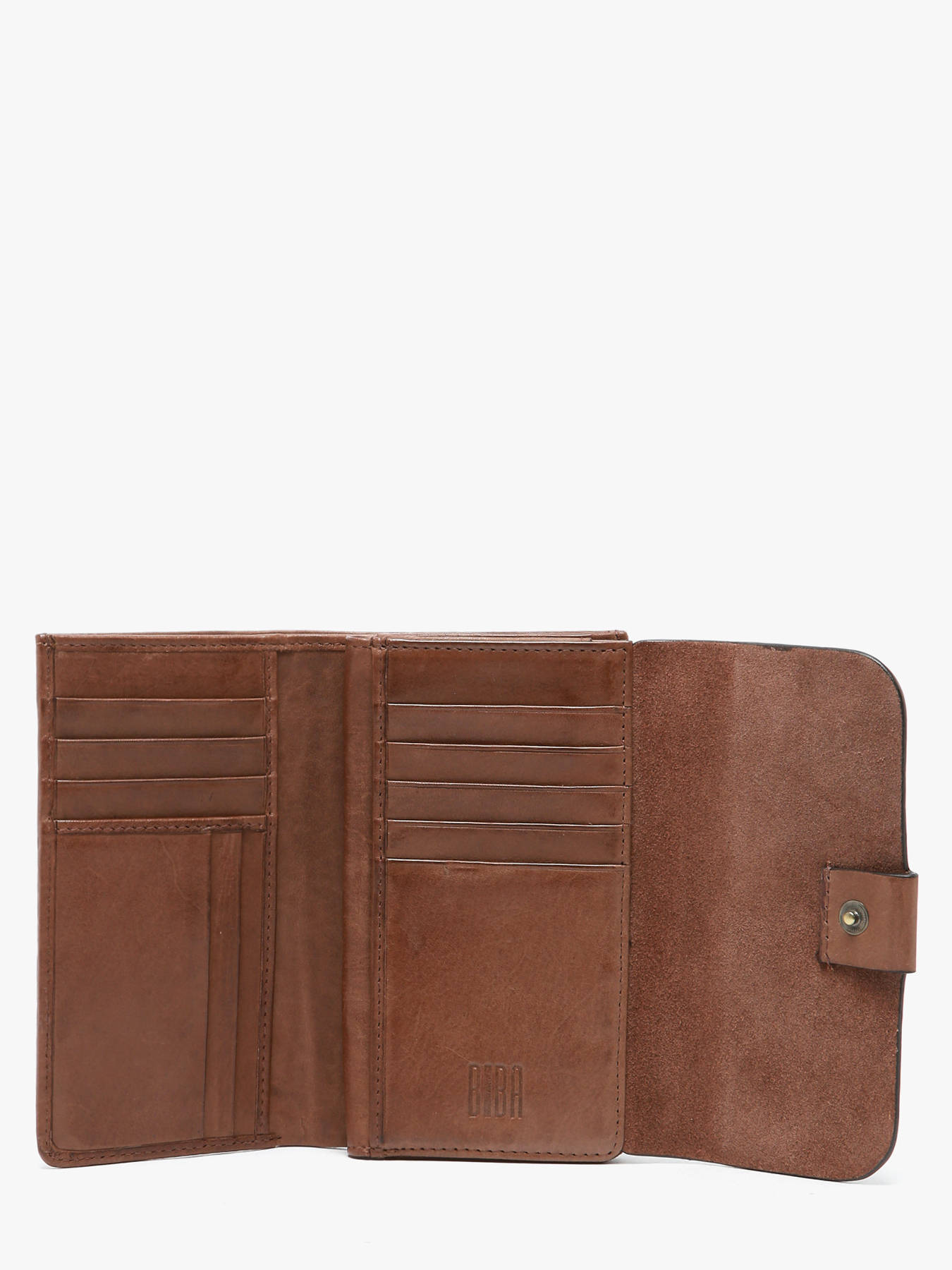 The BIBA leather wallet, made of cowhide leather, features a flap closure with press studs, offering both security and convenience. On the outside, it includes a back pocket for quick access to your essentials. Inside, the wallet provides a neat organization with 4 simple pockets, 11 card slots, 1 bill compartment, and 1 zippered pocket for optimal management of your small items. This model combines elegance and functionality, perfect for everyday use.